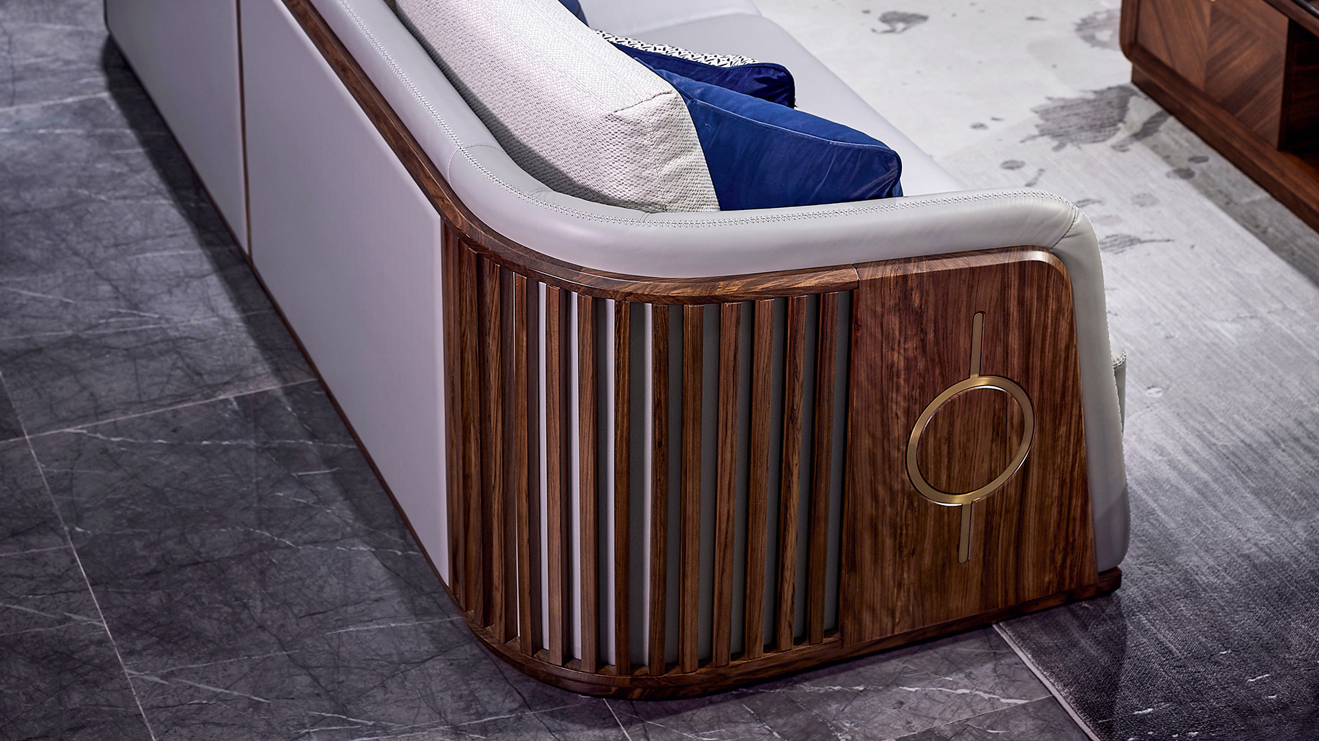 胡桃K,其風(fēng)格理念來源于意式簡(jiǎn)奢,用現(xiàn)代的設(shè) 計(jì)手法,打造出符合中國(guó)人價(jià)值觀的現(xiàn)代簡(jiǎn)奢。